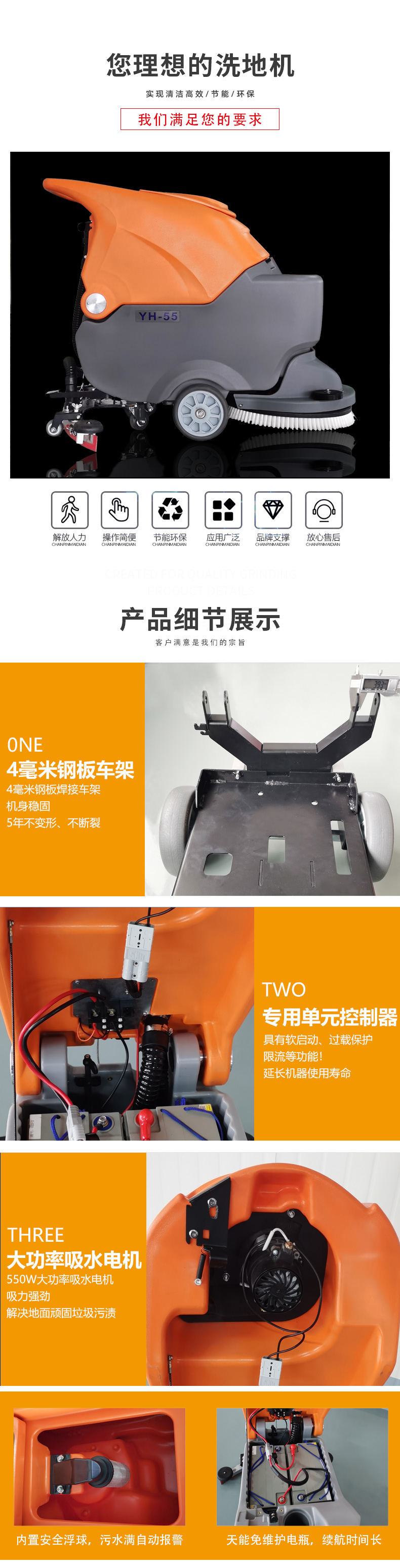簡要描述:瀅皓YH-55采用2塊100AH品牌超威或安能免維護電瓶,集灑水、刷地、去污、吸干為一體全自動設備...